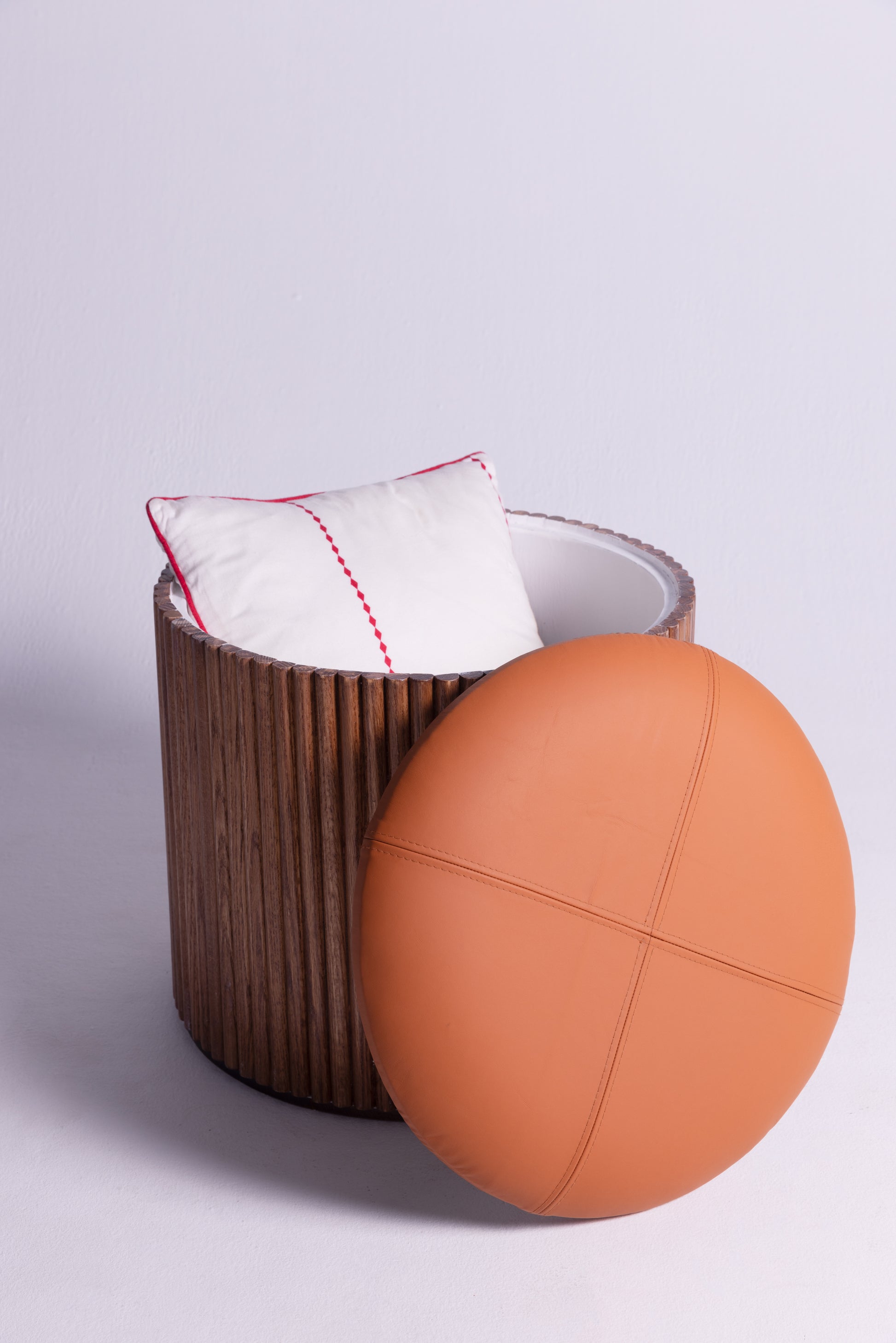 Transform your living room into a cozy and stylish space with the Brown Fluted Storage Pouf. It is a three in one: seat, storage and ottoman when needed.