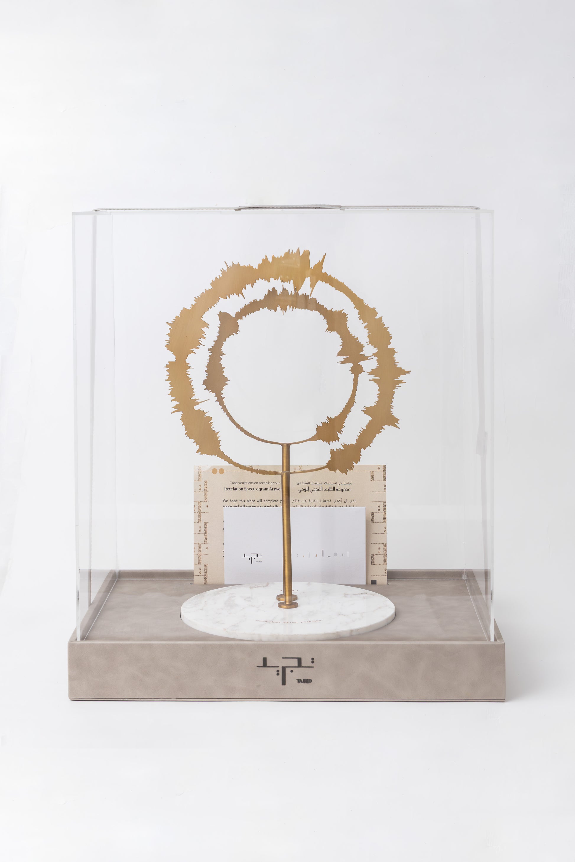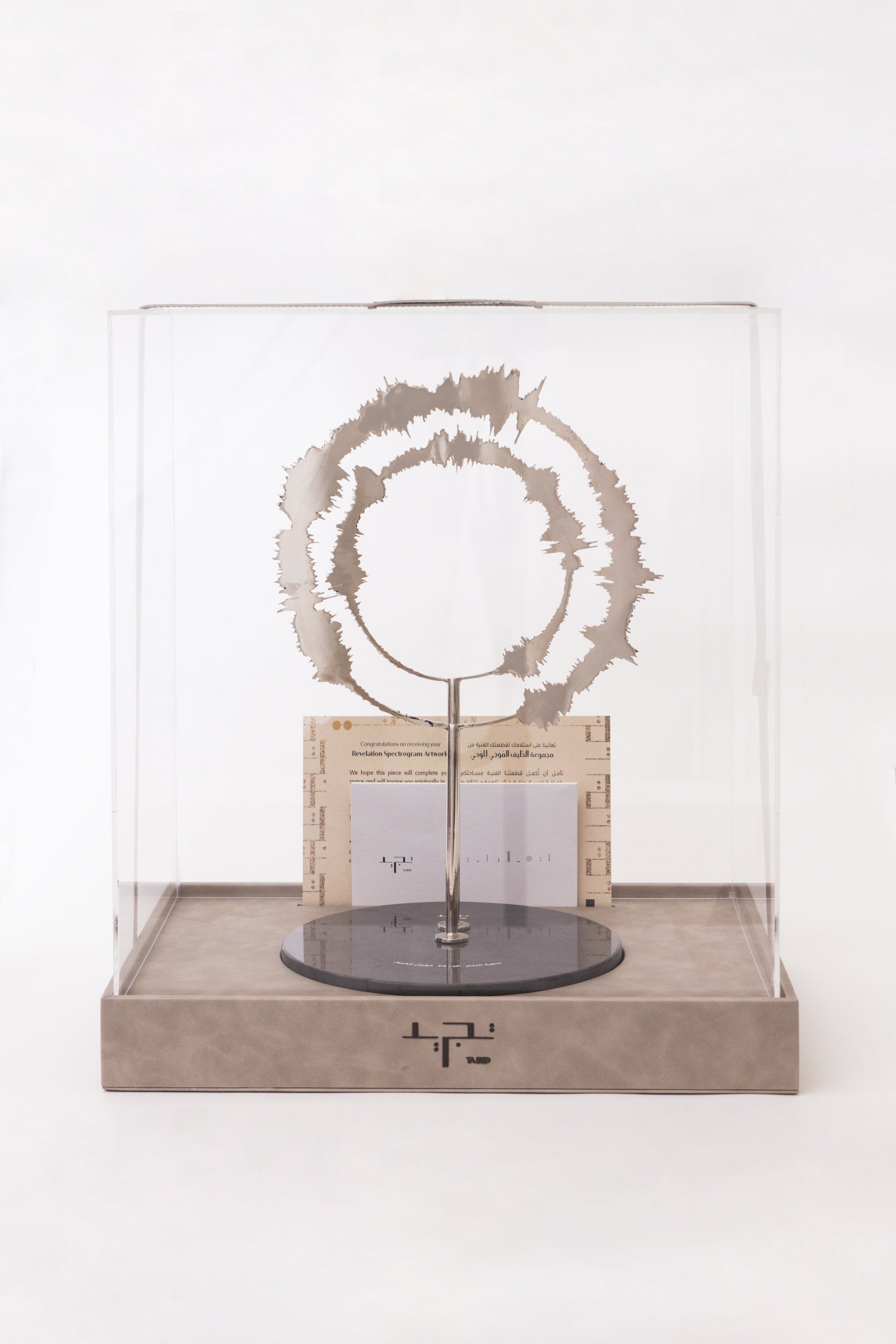 Whether you favor a minimalist or a maximalist home interiors, this home decor piece will definitely fit in every home style. Its form is a sound wave of a verse from the holy qura'an, that will inspire you to be closer to your creator and make you feel connected. This is a very powerful artistic object unlike any decorative accent.